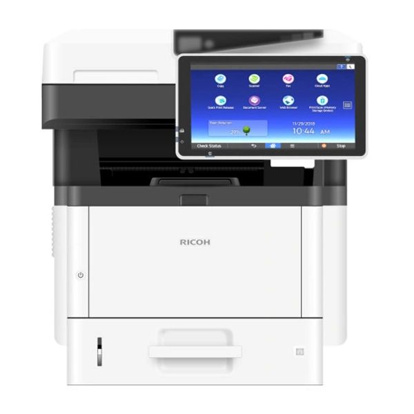 Multifuncional Ricoh MP C4504 imprime y copia a negro y color CARTA Y OFICIO escanea a carpeta de red, correo, para un volumen mensual de 50.000 mil impresiones, Panel de operación inteligente de 10.1" .