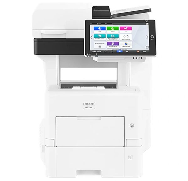 La Ricoh IM 550F es una impresora multifunción láser en blanco y negro que admite varios tipos de papel, tiene una memoria RAM de 2 GB y un disco duro de 320 GB, y cuenta con un panel de operación inteligente de 10.1 pulgadas. Además, ofrece funcionalidades de impresión, copia, escaneo y fax. Tipos de papel admitidos:
